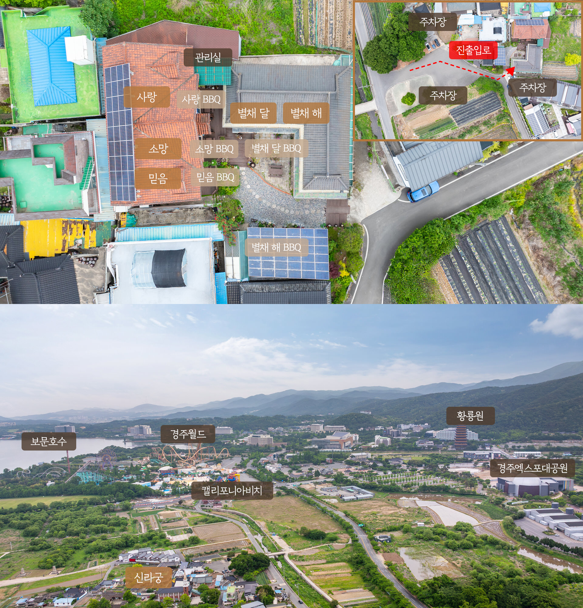 경주 신라궁 펜션 배치도 안내입니다.